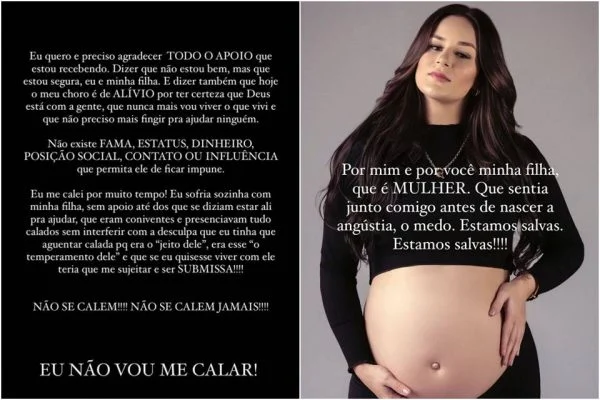 “Eu me calei por muito tempo! Eu sofria com minha filha, sem apoio até dos que diziam estar ali pra ajudar, que eram coniventes e presenciavam tudo calados sem interferir com a desculpa que eu tinha que aguentar calada porque era o ‘jeito dele’, era esse o ‘temperamento dele’ e que se eu quisesse viver com ele, teria que me sujeitar e ser submissa. Não se calem! Não se calem jamais! Eu não vou me calar!”, escreveu Pamella, que ainda agradeceu o apoio que tem recebido e afirmou que não está bem, mas a filha e ela estão seguras.