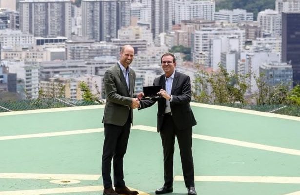 É oficial: o Príncipe William chegou ao Brasil! Nesta segunda-feira (3/11), o herdeiro da coroa britânica desembarcou no Rio de Janeiro. E claro, o visitante real foi recebido com honras: já chegou ganhando as chaves da cidade das mãos do prefeito Eduardo Paes e, como cenário, nada menos que “Sugarloaf Mountain“, o icônico Pão de Açúcar.